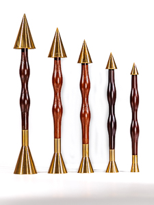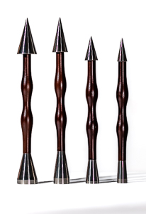 4 Stimmhörner doppelt aus Edelstahl, Griff aus Holz, mit steilerem Konus