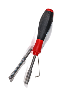 Zusätzlich Heft aus Kunststoff in den der Ledermutterdreher eingesetzt wird zum Feinjustieren von Hand.