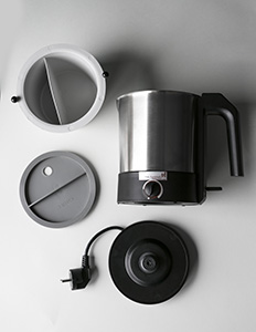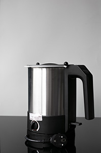 Wasserkessel aus Edelstahl mit Thermostatregulierung.